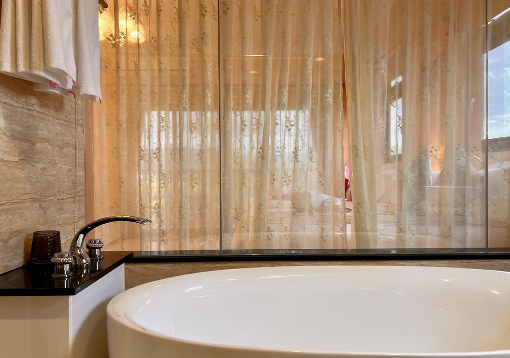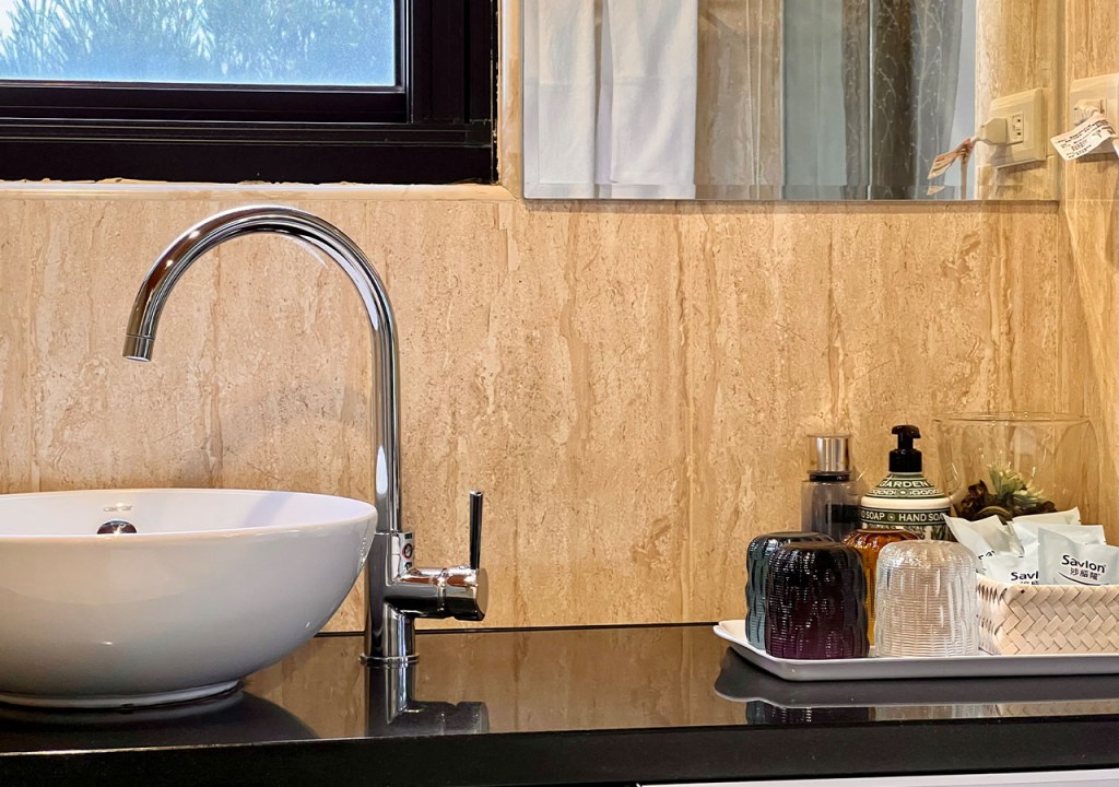 12坪套房含獨立衛浴,乾濕分離淋浴間、泡澡浴缸及香氛蠟燭、L’Occitane盥洗用品、Dyson吹風機、控溫免治馬桶等,讓您盡享私密與舒適。